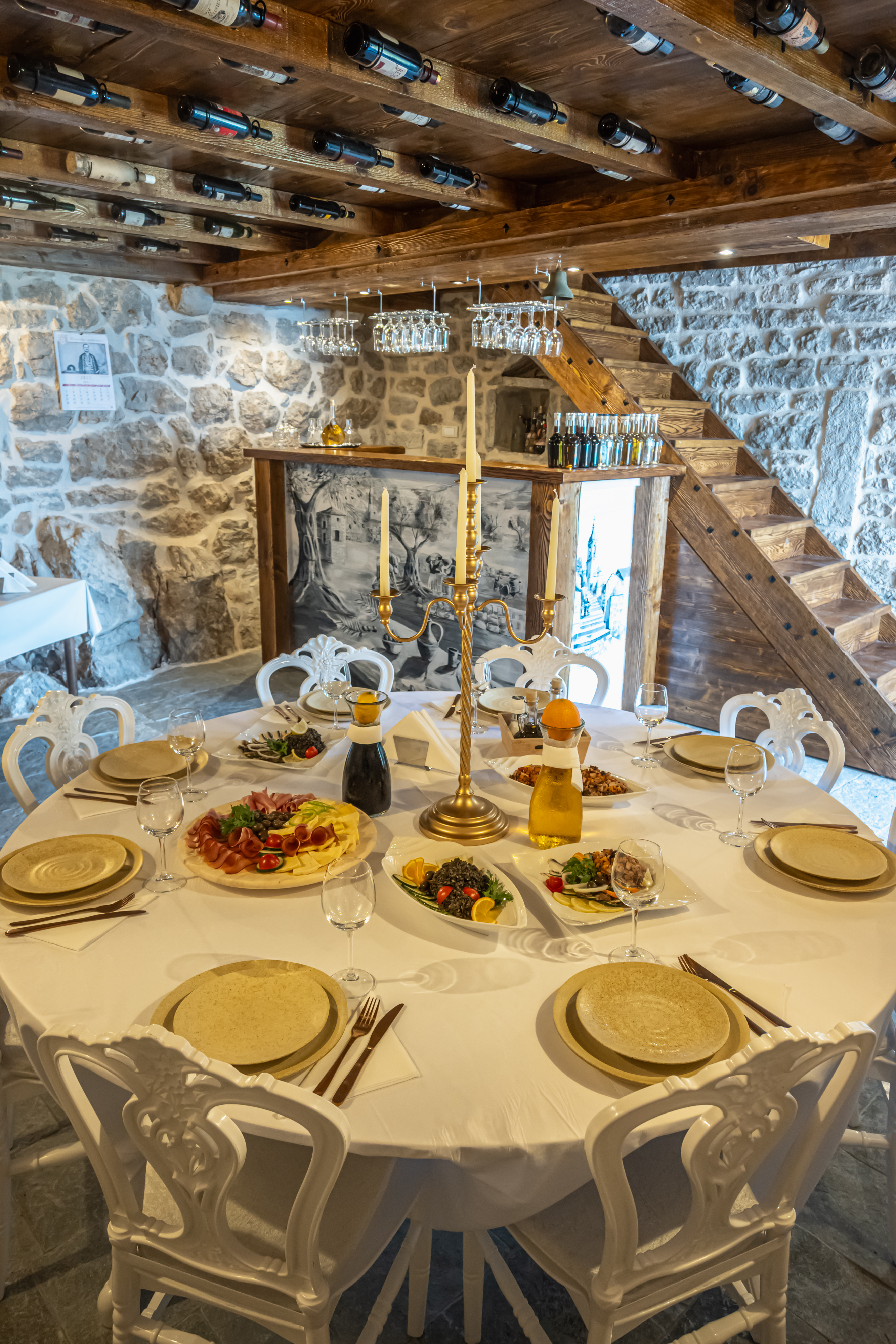 Inside, exposed stone walls and antique furnishings blend with a carefully selected list of local wines. The result is an atmosphere both rustic and refined, evoking tradition while embracing comfort.